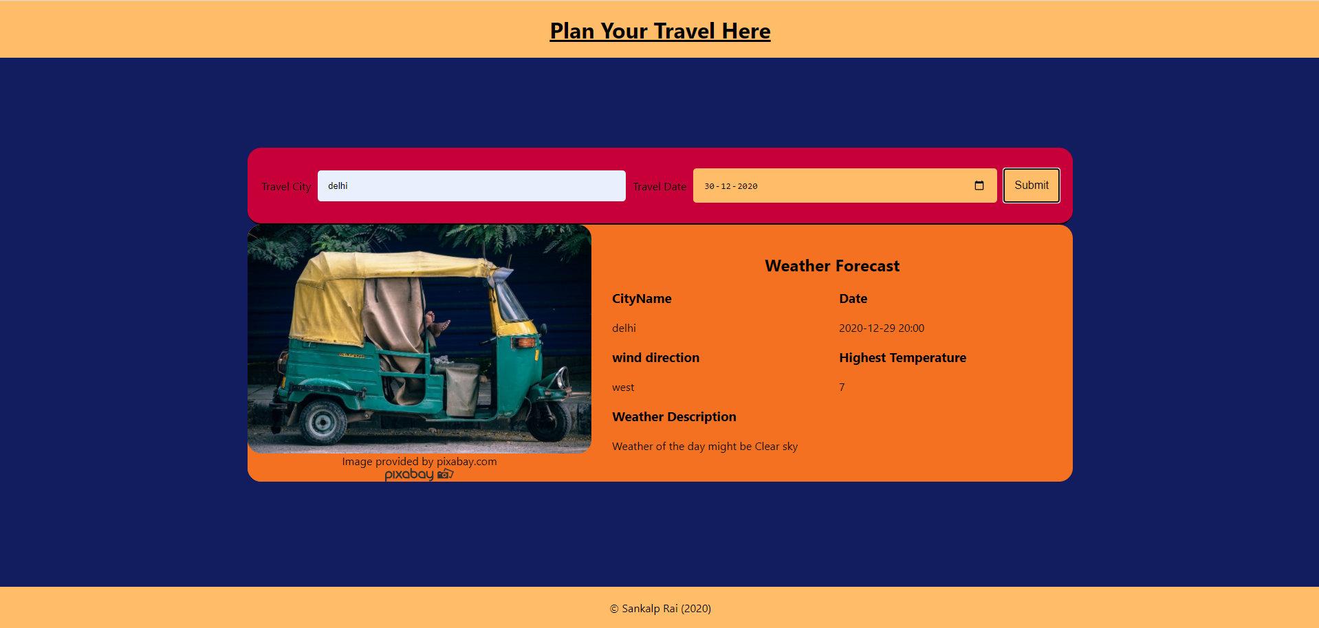 Created an asynchronous web app that helps you to plan your trips using desired Location and date it uses web API and user data to dynamically update UI